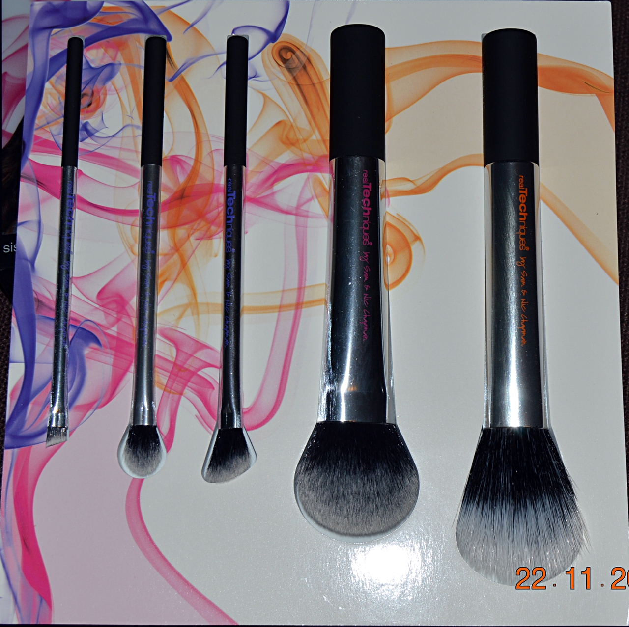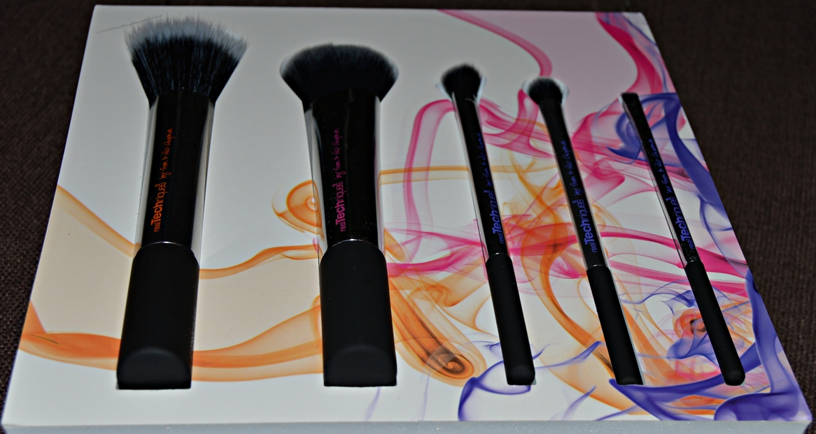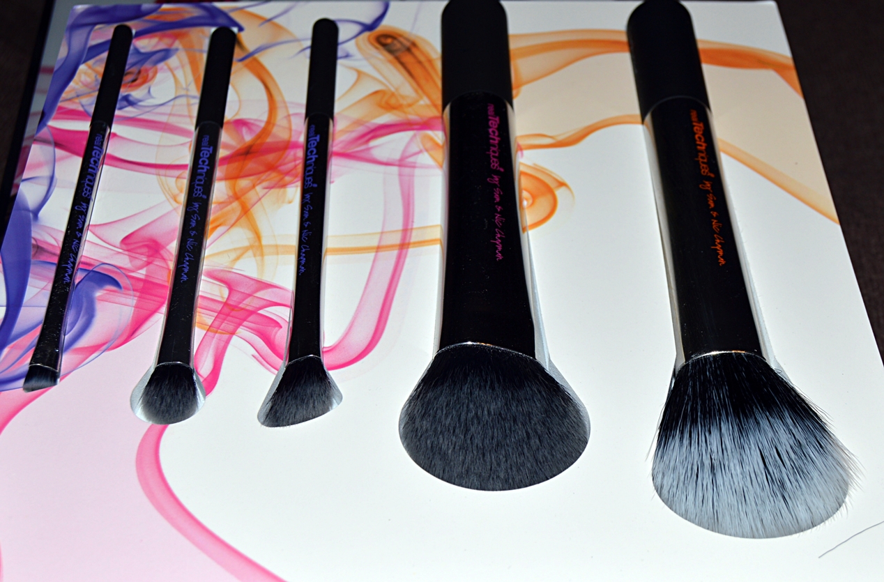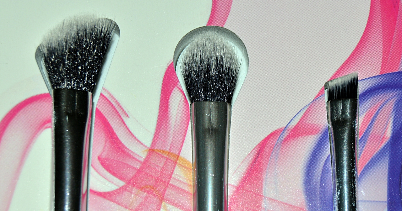 Astazi scriu despre un set de pensule pe care l-am cumparat acum ceva timp si nu am apucat sa va povestesc despre ele. Ma refer la Nick’s Pick – un set de pensule de la Real Technique, in editie limitata. Parerea mi-am format-o personal, dupa cateva folosiri, pentru ca setul l-am cumparat de balck friday, adica prin noiembrie, cu reducere de 20%, dar asta e alta poveste. Pensulele sunt pur si simplu super si chiar imi plac. Setul este compus din 5 pensule de marimi diferite si evident, pentru utilizari diferite, ambalate foarte elegant. Mai exact, ar putea fi un cadou foarte frumos pentru cineva care apreciaza astfel de produse. Nu cred ca „editie limitata” inseamna un numar redus de exemplare produse, cat mai degraba ca sunt frumos ambalate si de o calitate, poate putin peste medie, dar nu sunt foarte sigura de asta. Dupa cum se vede, sunt bicolore, ceea ce face destul de complicata mentinerea lor la culoarea initiala, dar cu straduinta si mai ales cu alcool izopropilic se poate rezolva 😉