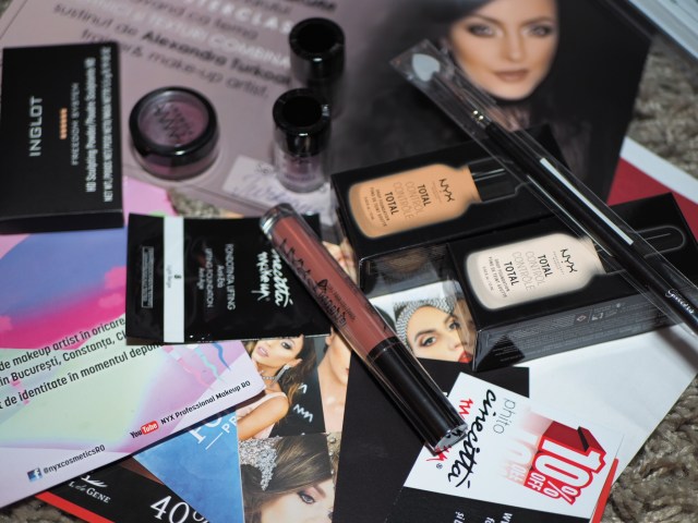 Sa va povestesc putin despre ea: masterclass-ul a fost fara cusur😊. Cand am intrat in sala, pe scaune fiecare participanta a primit un goodie bag din partea sponsorilor. Si ce credeti? A fost ceva woooow: foarte multe produse de makeup. Toate acestea sunt meritul ei pentru ca s-a straduit sa stranga multi sponsori care sa puna la dispozitie aceste bunatati😋. O sa vedeti pozele cu ele ca sa va faceti o idee! Nu s-a asteptat absolut nimeni sa primeasca atatea cadouri: pigmenti AMA si NYX, sculpting Inglot, fond de ten si ruj NYX, gene Spendor, Glittero si de la Magazinul de gene, card de fidelitatea Cupio, voucher reducere Bobbi Brown, Splendor, Cineccita…. cred ca le-am amintit de toate. Va vine sa credeti?!?!?!